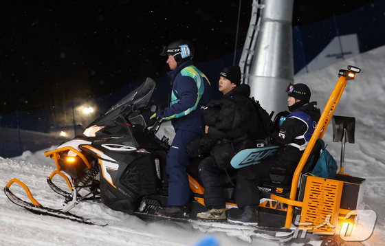 스노보드 최가온이 12일(현지시간) 이탈리아 리비뇨 스노파크에서 열린 2026 밀라노·코르티나담페초 동계올림픽 스노보드 여자 하프파이프 결선 1차전 경기 도중 추락해 의료진의 조치를 받은 뒤 이동하고 있다. 2026.2.13 © 뉴스1 김진환 기자