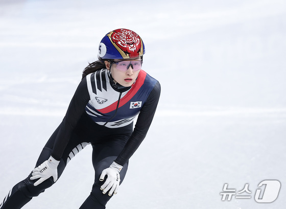 쇼트트랙 최민정이 14일(현지시간) 이탈리아 밀라노 아이스스케이팅 아레나에서 열린 2026 밀라노·코르티나담페초 동계올림픽 쇼트트랙 여자 1000m 예선에서 조1위로 준준결승에 진출한 후 기록을 확인하고 있다. 2026.2.15 © 뉴스1 김성진 기자