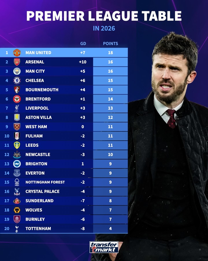 1위는 마이클 캐릭 임시 감독 부임 이후 완벽한 반등에 성공한 맨체스터 유나이티드였다. 맨유는 2026년 들어 5승 3무로 승점 18점을 획득했다. 이는 선두 아스날(4승 4무 1패)보다 2점 앞선 수치다.