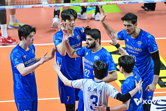 우리카드가 한국전력을 꺾고 봄배구 불씨를 살렸다(KOVO제공)