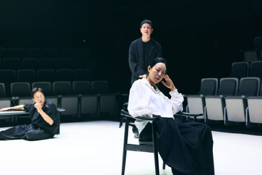 무대는 관객이 사면을 둘러싸고, 흰색 바닥 위에는 검은 가구만이 놓여 있다. 박 연출은 “폐쇄적인 공간 속에서 관객에게 직접 말을 건네며 이야기를 들려주는 방식은 인물을 극한으로 몰아 심리를 드러내는 효과가 있다”며 “비현실적이면서도 현실적인 이미지를 만들어내고자 했다”고 설명했다.