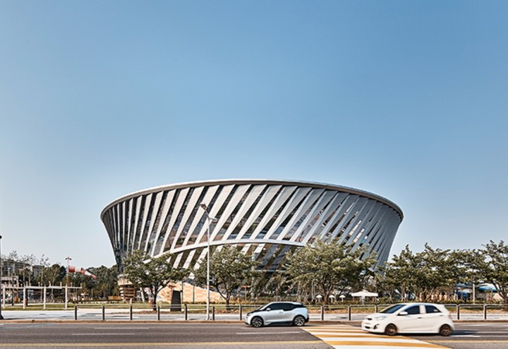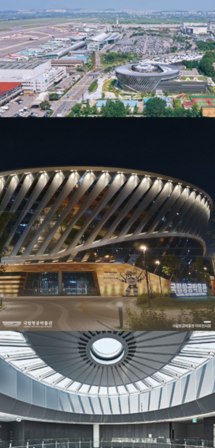 특히 주목할 점은 입지적 조건을 고려한 배치와 형태다. 공항과 지원시설 중심에 위치하여 남부순환도로, 하늘길 등 모든 방향에서 정면성을 갖는 다면성의 원형 배치를 채택했다. 또한, 자유로운 비행을 상징하는 원형 전시동과 수장, 업무 등 기능에 최적화된 직사각형 관리동이 결합하여, 이질적인 기하학이 주변 환경과 조화를 이루는 독특한 조형미를 완성했다.