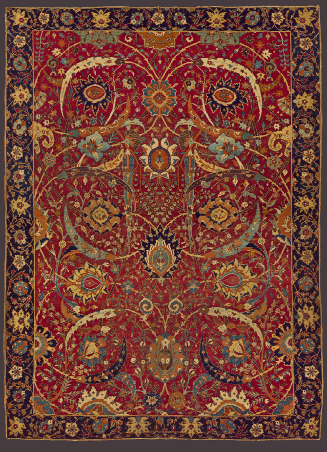 왕좌용 카펫, 사파비 제국 17세기, 이란 케르만, 도하 이슬람예술박물관. (사진=국립중앙박물관)