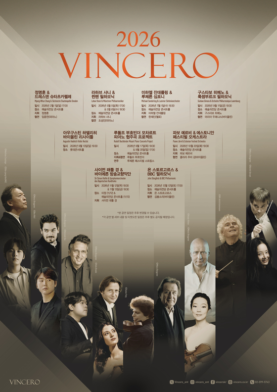 올해 창립 30주년을 맞은 클래식 공연 기획사 빈체로는 15일 '2026 공연 라인업'을 발표했다. 내년에는 피아니스트 조성진·임윤찬, 바이올리니스트 클라 주미 강·김봄소리, 첼리스트 한재민 등이 협연자로 나서고, 세계적인 지휘자 정명훈·사이먼 래틀 경·파보 예르비 등이 포디엄에 오른다.