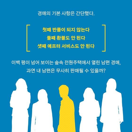 첫 장면은 '남 주기 아깝지만'이라는 이름의 비밀 사이트에서 열린다. 이혼을 앞둔 해리는 백화점에서 얻은 검은 명함을 단서로 멤버십 페이지를 열고, 남편 마틴의 사진을 올려 경매를 준비한다.