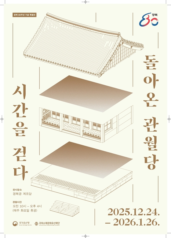 국가유산청은 국외소재문화유산재단과 함께 광복 80주년을 맞아, 오는 24일부터 내년 1월 26일까지 서울 종로구 경복궁 계조당에서 특별전 '돌아온 관월당: 시간을 걷다'를 개최한다고 23일 밝혔다.