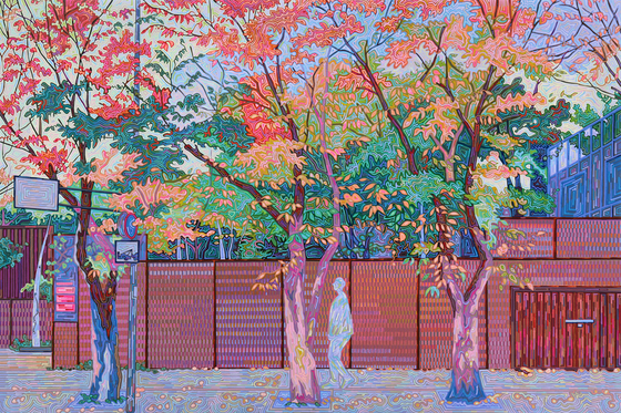 전시는 일상에서 본 작은 장면들을 간단한 문장처럼 그려 나간다. 캔버스 위에서 선은 왼쪽에서 오른쪽으로 흐르며 연결되고, 장면은 칸을 넘기듯 이어진다. 복잡한 설명보다 눈으로 따라가며 이해하는 방식이라 중학생도 편하게 볼 수 있다.