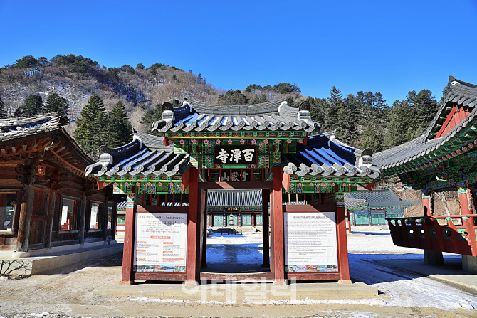 자작나무 숲에서 몸의 속도를 강제로 늦춘 후 설악산 깊은 계곡 안쪽에 몸을 숨긴 ‘백담사’(百潭寺)로 향한다. 마음의 마지막 짐을 내려놓을 종착지인 이곳을 찾아가는 길은 쉽지 않다. 굽이진 계곡길을 따라 들어가는 길은 세상의 소음으로부터 멀어지는 정화의 과정이다. 창밖으로 보여주는 깎아지른 절벽과 얼어붙은 계곡물은 일상과의 단절을 선언하는 경계선이다. 겨울철엔 일반 차량 통행을 제한해 셔틀버스를 이용해야 한다.