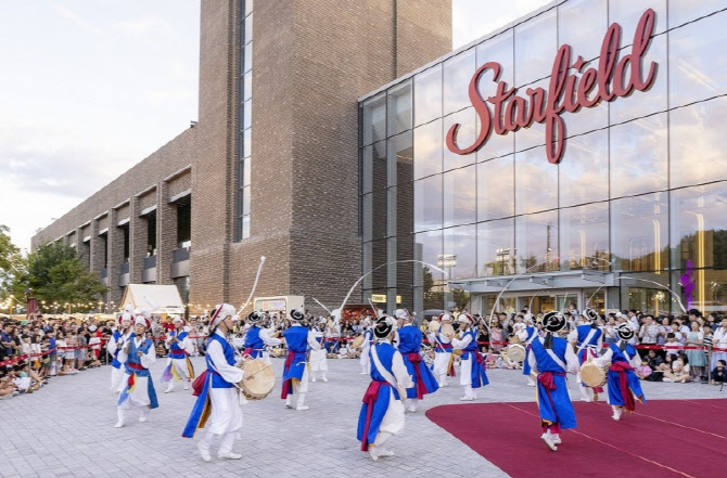스타필드에서 진행된 바우덕이 풍물단 공연 모습. (사진=신세계프라퍼티)