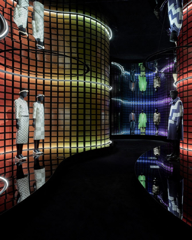 ’아이콘 룸‘에서는 루이 비통 가죽 제품의 진화를 다면체 구조의 디자인을 통해 조명한다. 이 공간에는 니콜라 제스키에르(Nicolas Ghesquière), 퍼렐 윌리엄스(Pharrell Williams), 마크 제이콥스(Marc Jacobs), 킴 존스(Kim Jones), 버질 아블로(Virgil Abloh) 등 하우스의 아티스틱 디렉터들이 남긴 각기 다른 창작 비전이 담겼다. ’모노그램 룸‘에서는 모노그램 패턴을 재해석한 다양한 오브제를 통해 모노그램에 내재된 창의성과 유희성을 강조한다.
