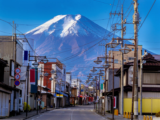 일본 시즈오카현 동부의 후지노미야에서 본 후지산