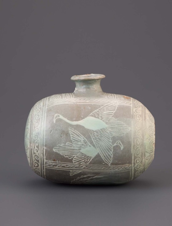 Lot. 071 <분청사기상감모란포류어학문장군 粉靑沙器象嵌牡丹蒲柳魚鶴紋獐本>, 高 15 口徑 4.7 底徑 5.5, 추정가 1.2억~2억 원 (마이아트옥션 제공)