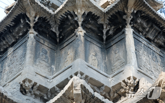 조선시대 불교 문화의 정수를 담고있는 국보 '원각사지 십층석탑'이 27년 만에 유리막 속 모습을 선보였다.