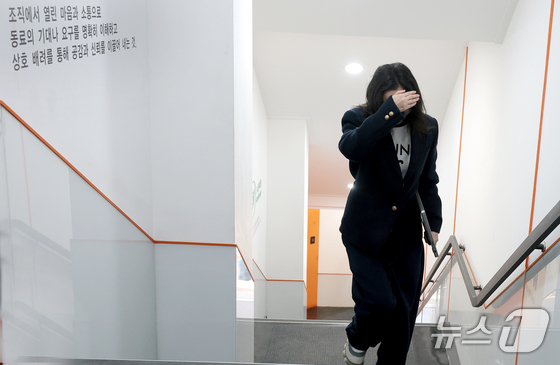 25일 오후 서울 종로구 우정국로 교원챌린지홀에서는 민희진 전 어도어 대표이자 현 오케이 레코즈 대표가 하이브와 풋옵션 1심 소송 결과 및 향후 계획을 전하는 기자회견을 진행했다. 이날 민 대표는 길을 잘못 찾아 6분 늦게 기자회견장에 도착했다. 민 대표는 물을 마셔 목을 축인 뒤 미니 준비한 입장문을 5분가량 읽었다.