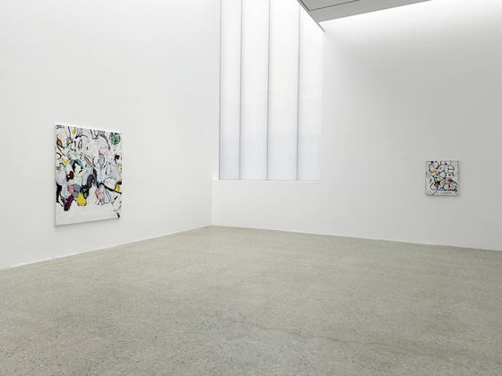 특히 2층 전시장에 위치한 '렉시콘스'(Lexicons) 작업은 작가의 회화적 태도를 응축해 보여 준다. 대형 캔버스를 하나의 확장된 드로잉처럼 활용하며 스프레이, 마커, 오일, 콜라주 등 다양한 재료를 혼합했다. '프리덤 버드'(Freedom Bird), '화이트 웨일'(White Whale) 등의 작품 제목 역시 특정 서사를 설명하기보다, 경계가 흐려진 채 생성과 소멸의 중간 단계에 머무는 작가의 회화적 상태를 암시한다.