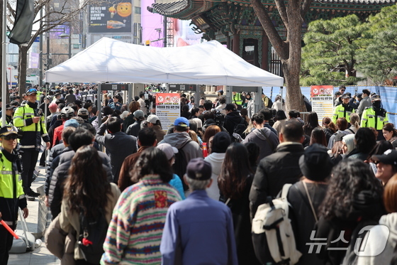 그룹 방탄소년단(BTS)의 광화문 공연 'BTS 컴백 라이브: 아리랑'(BTS THE COMEBACK LIVE|ARIRANG)을 앞두고 21일 서울 광화문 일대에 시민들로 인산인해를 이루고 있다. 2026.3.21 © 뉴스1 박지혜 기자