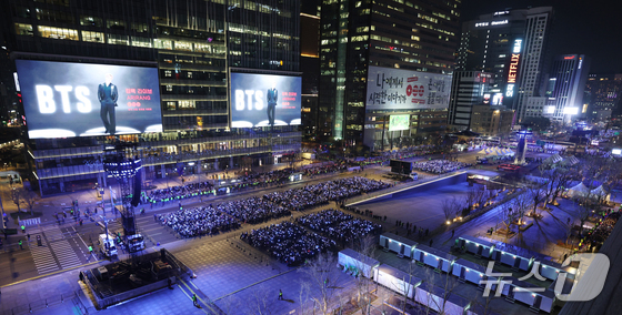 주최 측이 마련한 객석은 2만 2천여 석인데, 서울시에 따르면 광화문과 덕수궁 인근에 4만 2천 명이 몰려서 BTS의 공연을 함께했다.