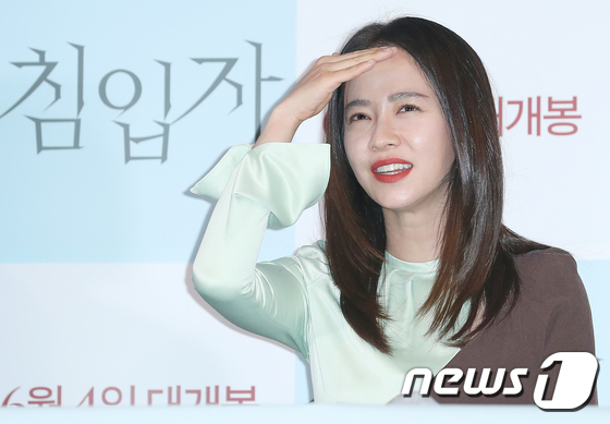 배우 송지효가 27일 오후 서울 용산구 CGV용산아이파크몰에서 열린 영화 ‘침입자’ 언론시사회에 참석해 취재진의 질문을 듣고 있다. 영화 ‘침입자’는 실종됐던 동생 유진이 25년 만에 집으로 돌아온 뒤 가족들이 조금씩 변해가고, 이를 이상하게 여긴 오빠 서진이 동생의 비밀을 쫓다 충격적 진실과 마주하게 되는 미스터리 스릴러다. 2020.5.27 © 뉴스1 김진환 기자
