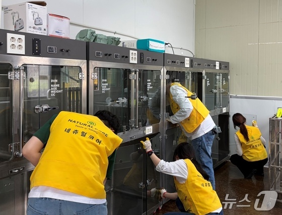 이들이 함께한 '글로벌 프렌즈 봉사단'의 봉사활동은 지난 4일 경기 성남 KK9레스큐 보호소에서 진행됐다. 외국인 자원봉사자와 네츄럴코어 임직원은 이번 봉사에서 견사 청소와 강아지 산책 활동을 통해 보호소 환경 개선과 동물들의 정서적 안정에 기여했다. 반려동물 사료도 후원했다.