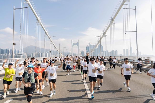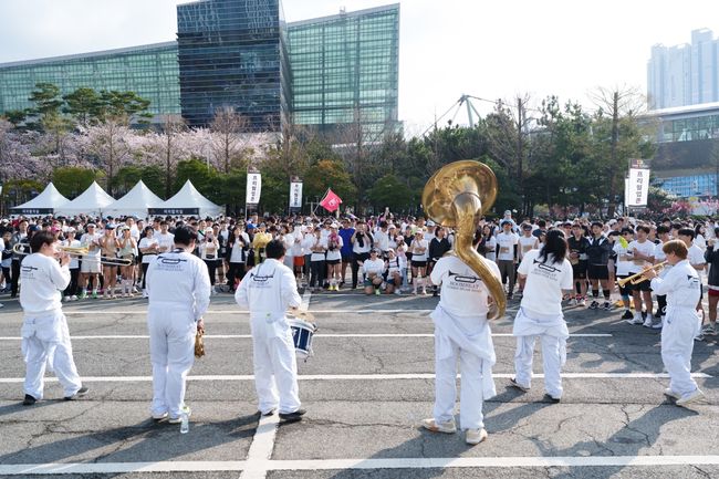 4월 5일 이른 아침, 부산 벡스코 현장. 안전 사고를 예방하기 위해 그룹별로 순차적으로 출발을 했다. 부산 벡스코 야외광장을 출발해 광안대교를 지나 광안리 해수욕장까지 한 번에 이어지는 코스는 8km짜리였지만 10km 코스를 선택한 이들은 코스 중간에 2km를 더 연장해서 달렸다.