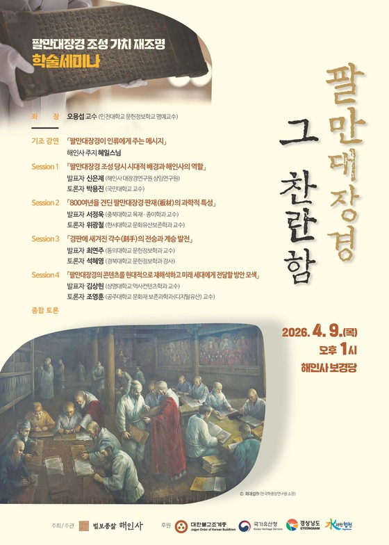 해인사 측은 "팔만대장경은 선조들의 간절한 염원과 지혜가 담긴 인류 공동의 기록유산"이라며 "그날의 간절함을 오늘에 다시 잇고, 팔만대장경의 역사와 가치, 미래적 가능성을 함께 모색하는 의미 있는 자리가 되기를 기대한다"고 밝혔다.