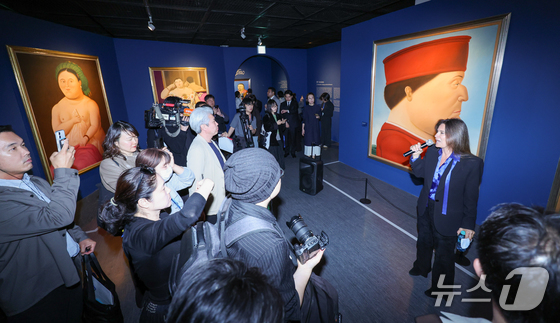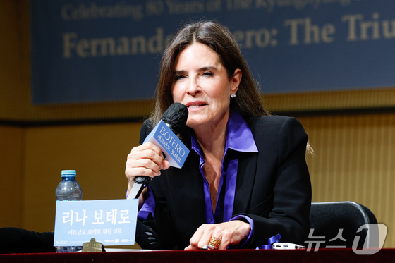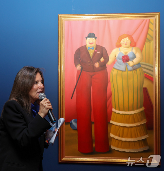 리나 보테로 페르난도 보테로 재단 대표가 23일 서울 서초구 예술의전당에서 '페르난도 보테로: 형태의 미학' 전시 기자간담회를 갖고 있다. © 뉴스1 안은나 기자