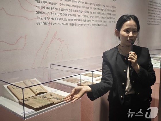 4월 27일 김민영 학예연구사가 '모던 매거진 조선의 힙스터 아카이브'전 프리뷰에서 도슨트를 진행하고 있다. © 뉴스1 김정한 기자