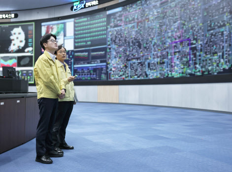 김성환 기후에너지환경부 장관이 지난 2일 경기도 의왕시 전력거래소 경인지사를 찾아 전력 당국 관계자와 유사시 전력망 안정 운영 체계를 살피고 있다. (사진=기후부)