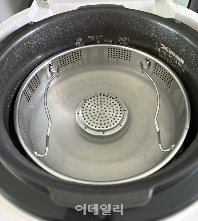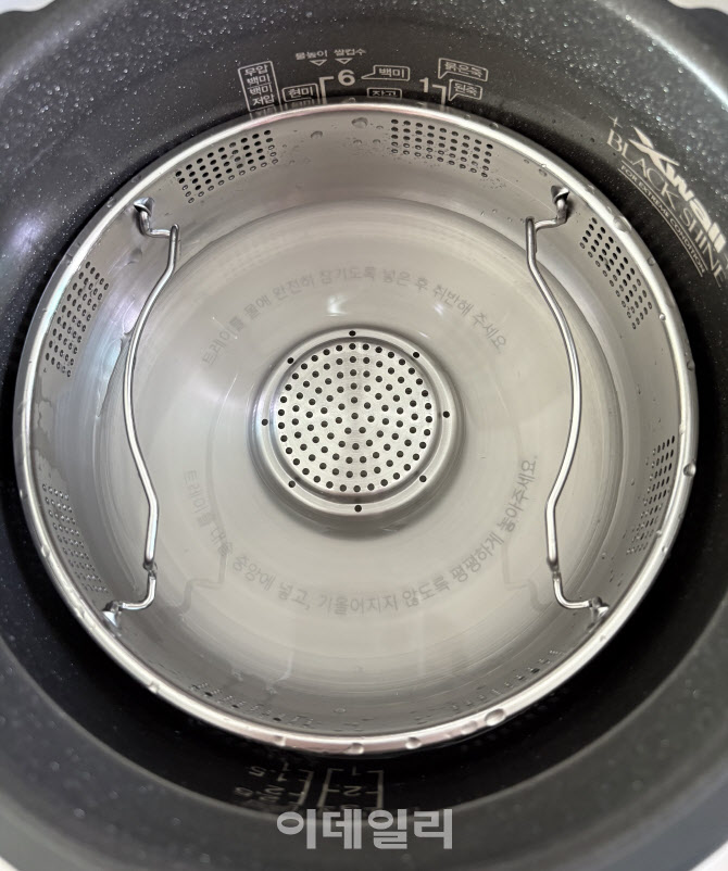 저당밥을 지을 때는 쌀과 물을 앉힌 뒤 저당트레이를 물에 잠기도록 올려두고 취사를 시작한다. (사진= 김혜미 기자)