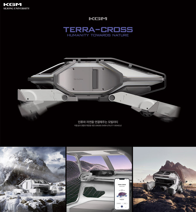 이를 통해 학생들은 ‘자연을 향한 모빌리티’를 주제로 KGM의 디자인 철학 ‘Powered by Toughness’를 젊은 디자이너의 시각으로 재해석한 미래형 크로스오버 모빌리티 2종의 디자인 모델을 완성했다.
