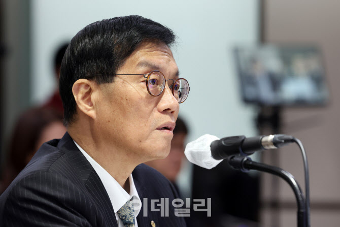 [이데일리 방인권 기자] 이창용 한국은행 총재가 20일 오전 서울 중구 한국은행 본점에서 열린 2025년도 국회 기획재정위원회 한국은행 국정감사에서 의원질의에 답하고 있다.