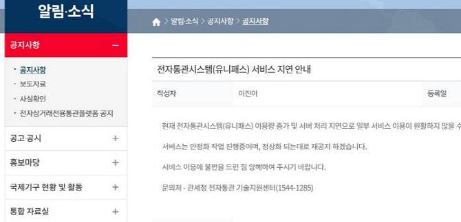 실제로 정일영 더불어민주당 의원실이 관세청에서 제출받은 자료에 따르면 지난달 30일부터 이달 1일까지 이틀간 통관부호 재발급 건수는 42만 2000여건에 달했다. 이는 올해 1월부터 10월까지 전체 재발급 건수(11만 1000여건)의 약 4배에 해당하는 수치다.