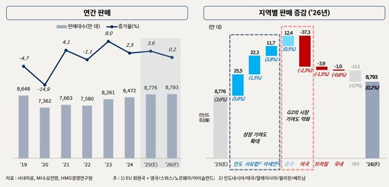 현대자동차그룹 HMG경영연구원의 2026년 글로벌 자동차 판매량 전망치(자료사진. 현대차그룹 제공). 2026.01.16.