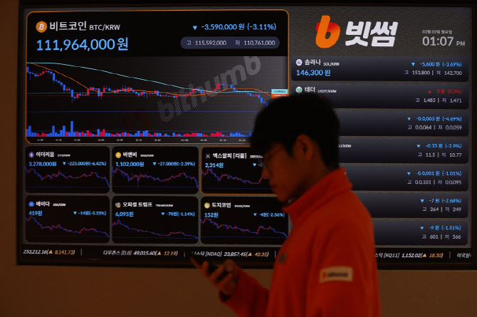 지난 2일 서울 서초구 빗썸라운지 강남본점 현황판에 비트코인 등 디지털자산 시세가 표시되고 있다. (사진=이데일리 이영훈 기자)
