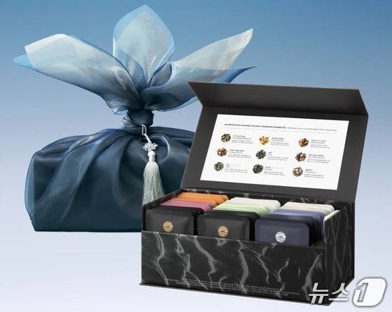 또 다른 선물인 아모레퍼시픽의 오설록 '티 에디션 헤리티지 9종 63입'도 주목받았다. 이 선물은 전통 보자기 패키지에 다양한 차를 구성한 제품으로, 한국 고유의 차 문화를 현대적으로 담아낸 것이 특징이다.