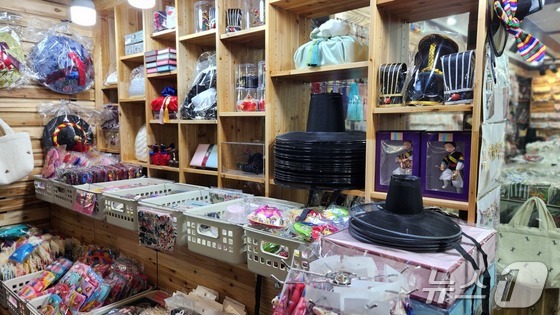 24일 광장시장에서 갓을 비롯해 다양한 K-액세서리를 판매하고 있는 모습 © 뉴스1 이재상 기자