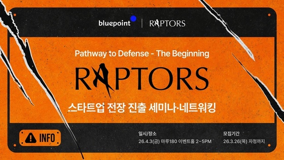 블루포인트파트너스는 스타트업의 국방·방산 산업 진출을 지원하는 플랫폼 '랩터스'(RAPTORS)를 출범하며 민간·방산 기술 협업 흐름에 올라탔다. 다음달 초 예정된 '랩터스–더 비기닝'에서는 △글로벌 디펜스 혁신 사례 △국내외 시장 진출 전략 △정부 정책 방향 등이 공유될 예정이다.