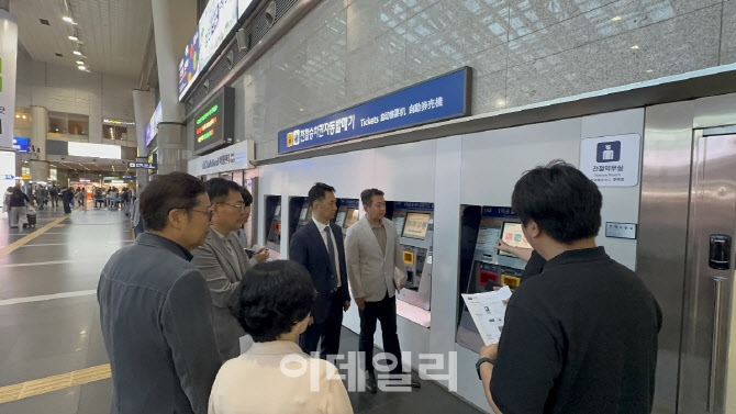 한국철도공사(코레일)가 1일 한국장애인단체총연맹와 대한노인회 관계자를 초청해 ‘광역철도 교통약자 이동편의 개선을 위한 간담회’를 개최하고, 용산역 편의시설 등을 이용자 관점에서 점검하고 있다.