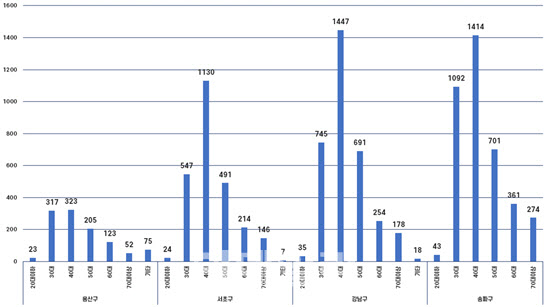 용산구는 30대 317건, 40대 323건으로 절반 이상을 차지했고, 서초구는 30대 547건, 40대 1,130건으로 40대 비중이 높다. 강남구에서는 30대 745건, 40대 1,447건, 송파구에서는 30대 1,092건, 40대 1,414건이 거래됐다. 서울 핵심 권역에서 30~40대가 주도적으로 움직이고 있음을 보여주는 수치다. 이는 인기 지역의 일시적 움직임이 아니라, 실수요 연령대의 거래가 꾸준히 누적되며 시장의 하방을 지탱하는 흐름으로 볼 수 있다.