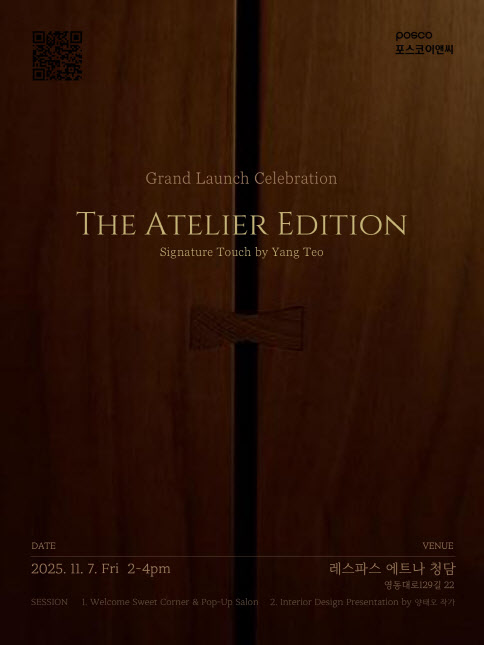 포스코이앤씨 관계자는 “아틀리에 에디션은 예술과 기술, 전통과 현대가 조화를 이루는 새로운 형태의 하이엔드 주거공간”이라며 “앞으로도 오티에르 브랜드를 중심으로 고객의 감성과 품격을 반영한 새로운 주거 트렌드를 제시해 나가겠다”고 말했다.