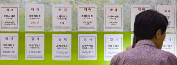 서울 시내의 한 공인중개사무소 앞에 오피스텔 가격 안내문이 붙어 있다(사진=뉴시스)
