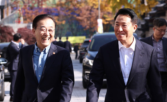 김 장관과 오 시장은 13일 오전 서울 중구의 한 식당에서 만나 약 90분 간의 면담을 진행했다. 이날 자리에선 서울 전 지역이 규제지역(투기과열지구·조정대상지역)으로 묶인 문제부터 그린벨트 해제 등 다양한 의제에 대해 논의를 나눈 것으로 전해졌다. 김 장관은 면담 후 기자들을 만나 “(면담 과정에서 나온 의제가) 18개가 넘는다”며 “전향적으로 검토해 분명한 해답을 내놓겠다”고 말했다.
