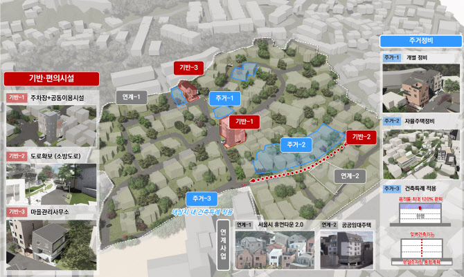 서울시는 자체 추진 중인 휴먼타운 2.0 사업과 뉴빌리지 사업을 연계, 민간의 주택정비 활성화와 공공 기반시설 확충을 병행·추진하고 있다. 휴먼타운 2.0은 재개발이 어려운 저층 주거지에 신축·리모델링 등 개별 건축을 지원하는 서울시의 사업이다.