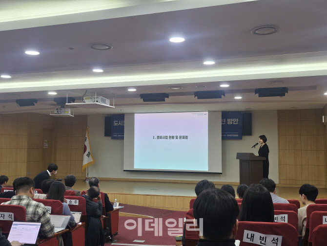 이지현 주택산업연구원 도시정비실장이 19일 서울 여의도 국회 의원회관에서 열린 ‘도시정비 활성화 및 신속추진을 위한 공공참여 촉진 방안’ 세미나에서 주제 발표를 하고 있다. (사진=김형환 기자)
