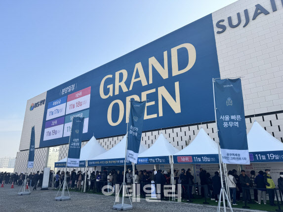 경기 김포 사우동 소재 풍무역세권 수자인 그라센트 1차 아파트 견본주택이 개관하는 지난 7일 오전 방문객들이 길게 줄을 서있다.(이데일리DB)