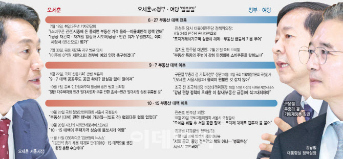 서울 내 정비사업 인허가권에 대해서도 여당은 정비구역 인허가가 서울시 단일 창구로 진행되면서 정비사업이 지연돼 자치구로 위임해야 한다고 주장하고 있다. 오 시장은 권한 부여는 신중해야 한다는 입장이다. 오 시장은 “자치구들은 모두 사업을 빠르게 추진하고 싶어하는데 구청장들은 지역에서 압력을 거세게 받아 중립을 유지하기 힘들 수 있다”고 말했다.