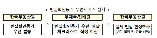 이번 협약에 따라 빈집확인등기 우편서비스는 부동산원이 추정 빈집에 등기를 발송하면 지역 사정을 잘 아는 집배원이 해당 주택을 방문해 외관 상태와 거주 여부 등 확인 체크리스트를 작성해 회신하는 방식으로 운영하게 된다.