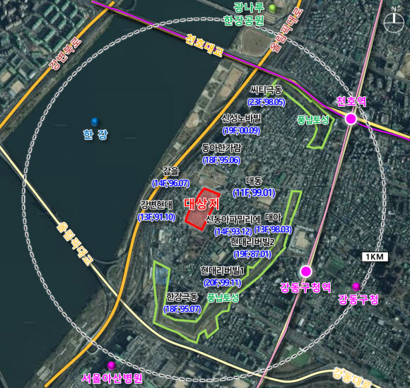 노후 단지인 풍납미성아파트는 주차공간이 부족하고 건물 노후화로 인한 부식 등으로 개선이 시급한 곳이다. 반면 한강 조망이 가깝고 지하철역, 풍납백제문화공원, 광나루야구장이 가까워 편의시설 접근성도 뛰어나다. 교육 인프라도 잘 갖춰져 있어 재건축을 통해 주거 만족도를 크게 높일 수 있는 잠재력이 있다.
