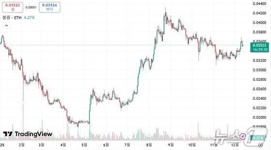 차트 분석에 따르면 왼쪽 어깨는 2024년 말 약세 구간에서 형성됐다. 머리는 투매 국면이었던 올해 4월 이더리움(ETH)가격이 0.0176BTC(비트코인)일 때 만들어졌다.