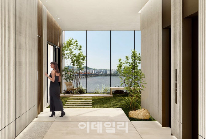 해당 공간은 현관문 앞에 별도로 마련돼 정원처럼 체감되도록 구성됐다. 이에 따라 단독주택에서 대문을 열고 마당을 거쳐 집으로 들어가듯, 공동주택에서도 엘리베이터 하차 후 전용 홀과 정원형 공간을 지나 가구로 진입하는 새로운 주거 동선을 구현한 것이 특징이다.